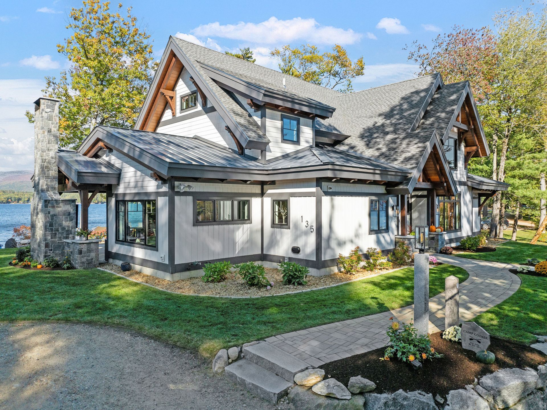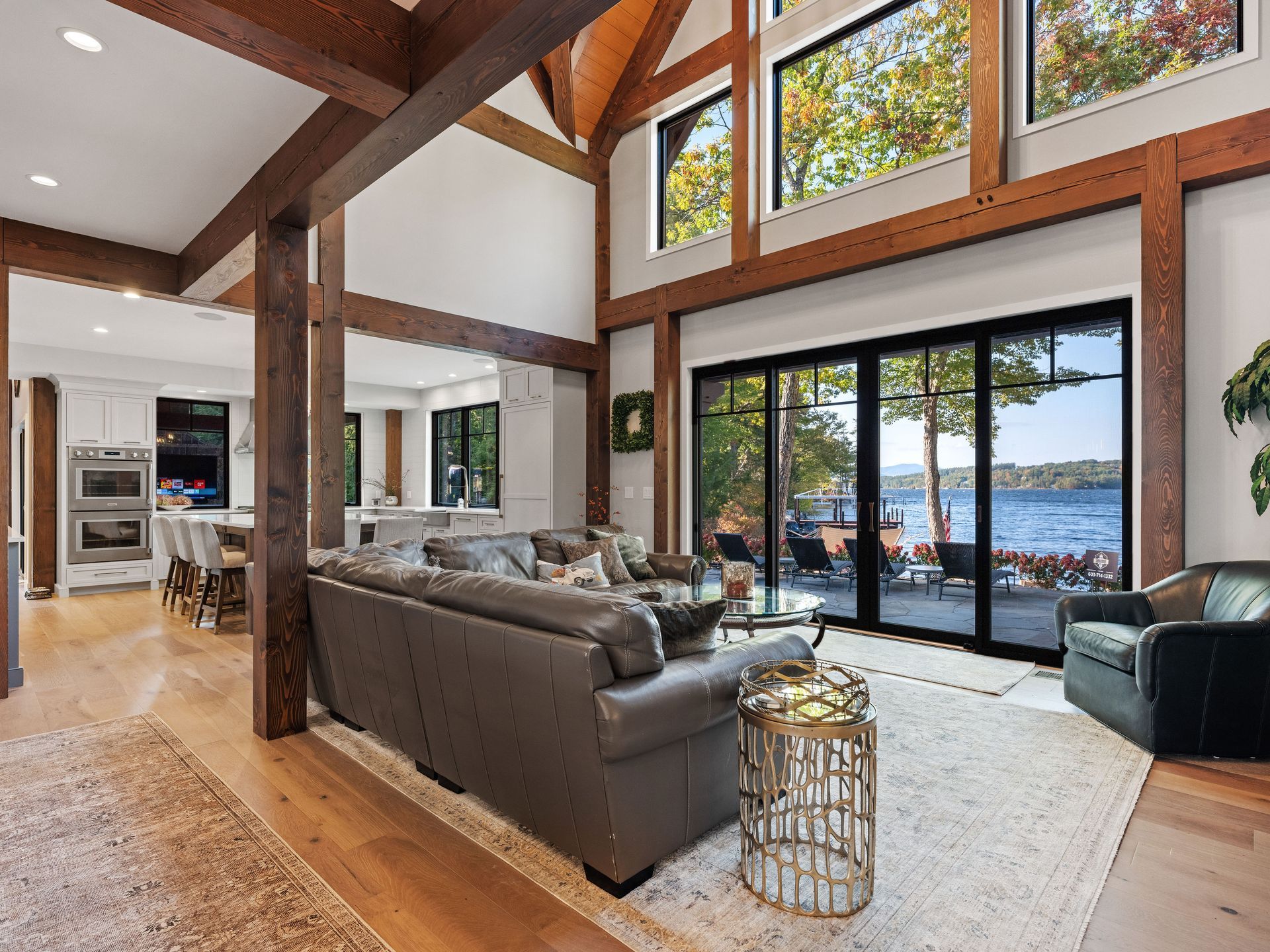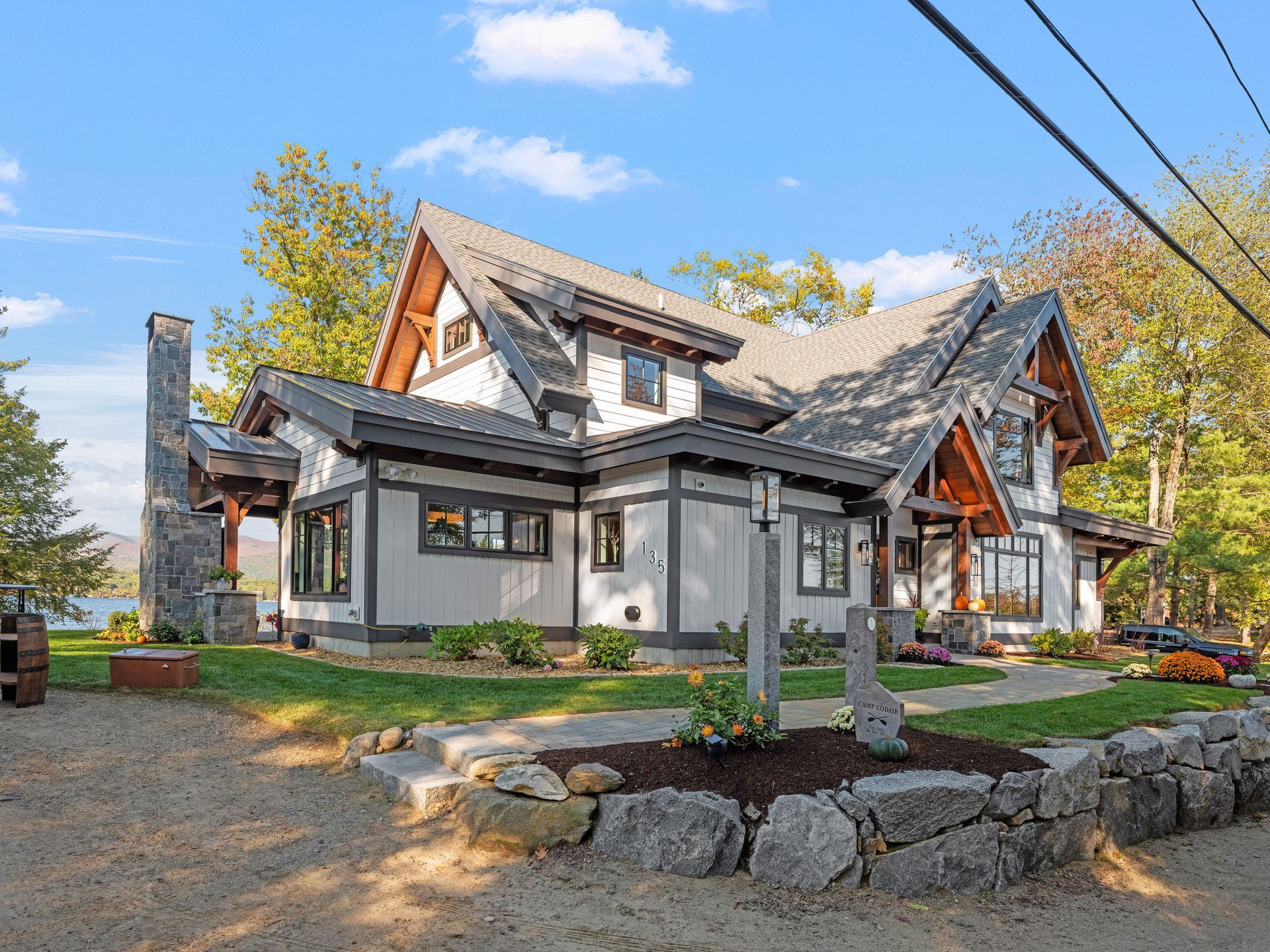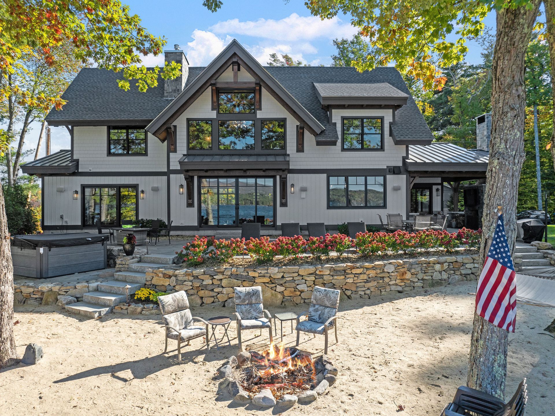 This modern lake house is a pure example of custom design and construction. Rustic timbers from Canadian Timberframes are blended with a transitional style that opens to Lake Winnipesaukee on both sides of the home. Upon entering, the floating staircase and billiard room with wet bar set the stage for a fun atmosphere. Unique cabinetry, wall coverings and tile will keep you exploring this trendy, yet warm, lakefront home. The connection to the exterior environment is created by the Pella Windows & Doors and allows you to flow onto an amazing exterior covered patio with fireplace for those cool fall nights. Family and friends are at the very core of this home – right where they should be!