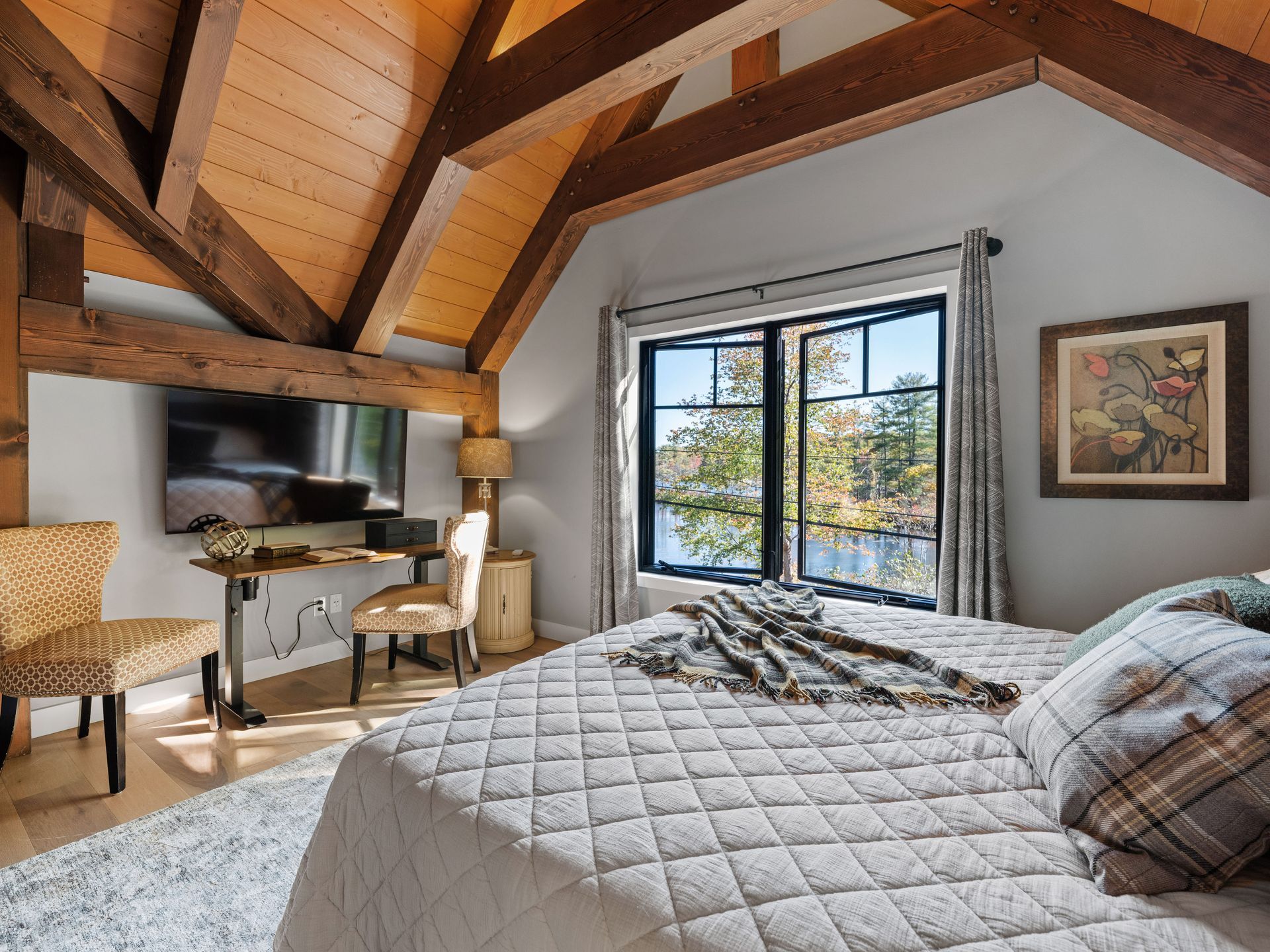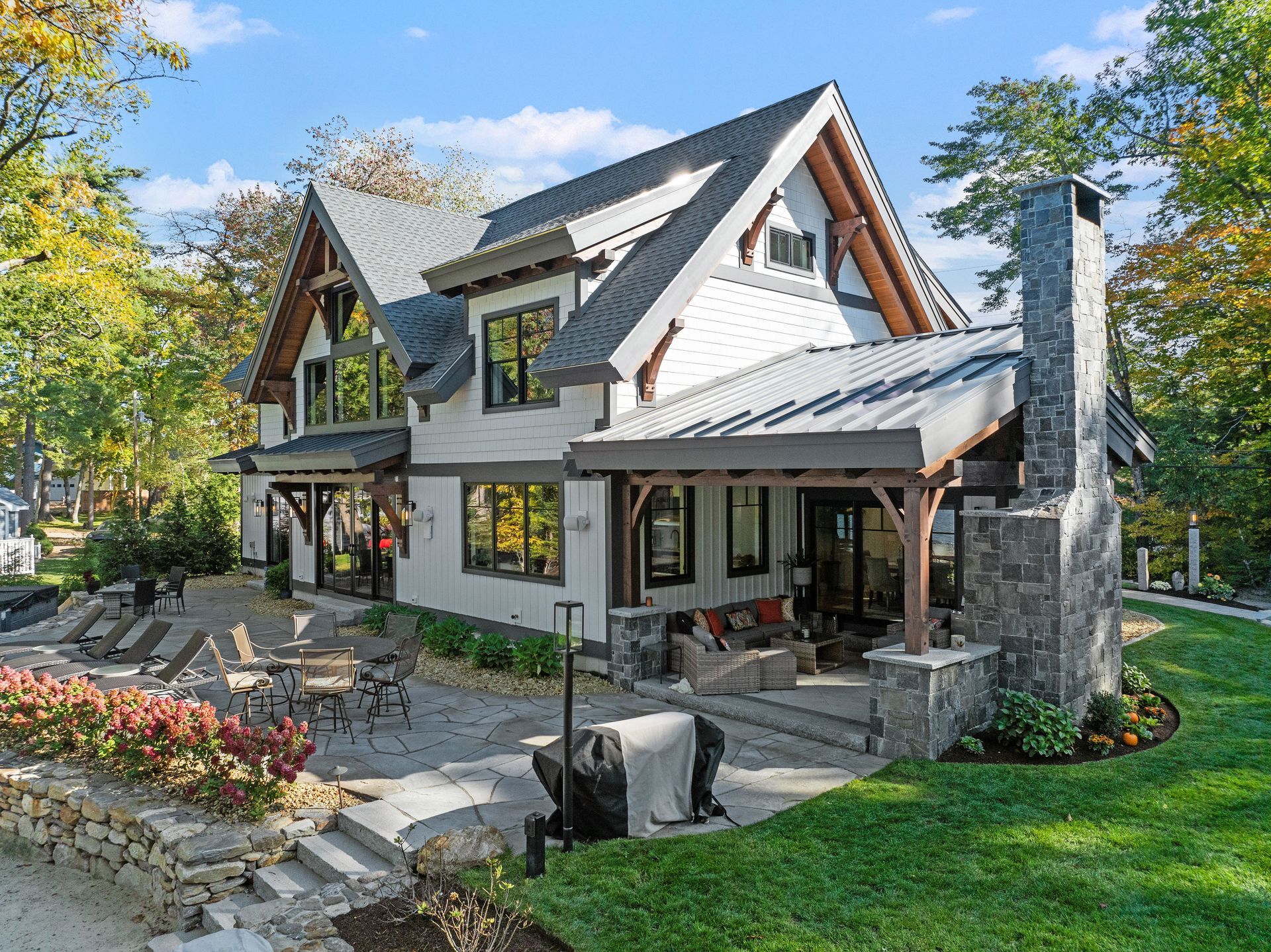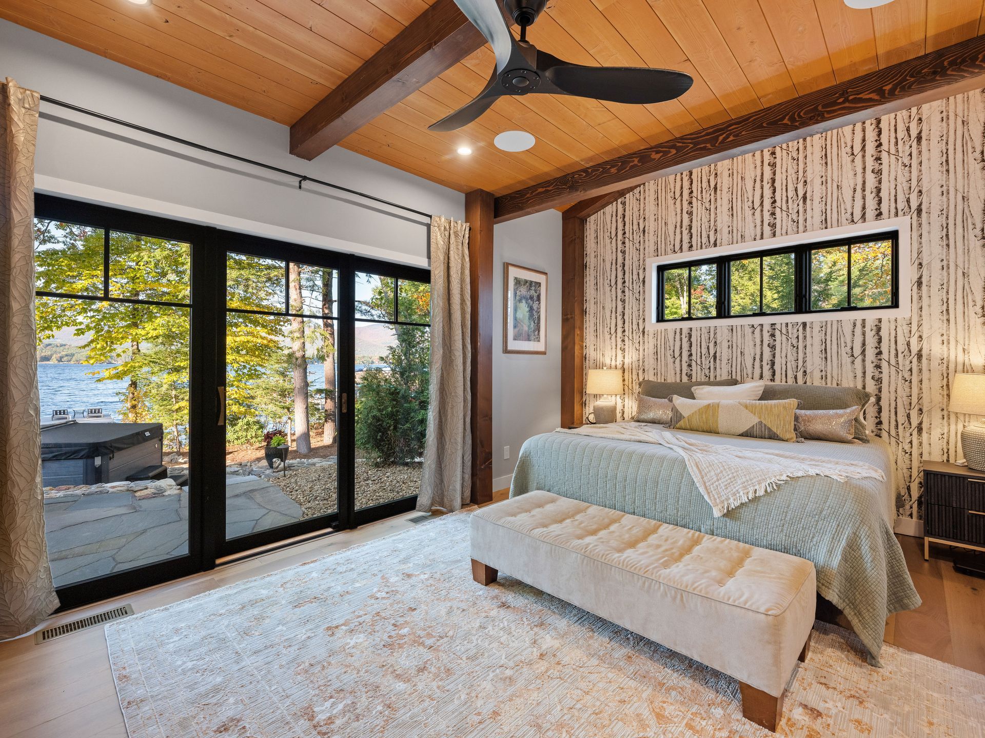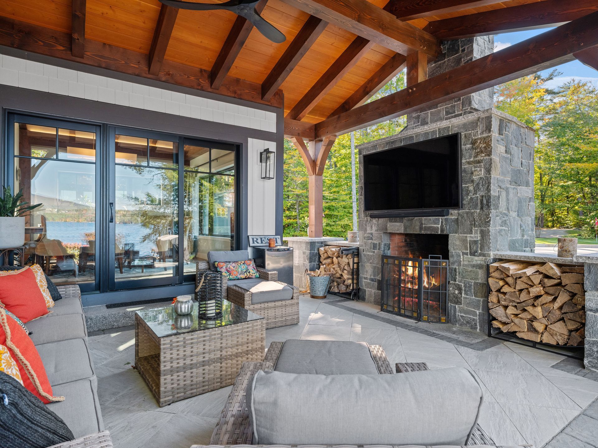 This modern lake house is a pure example of custom design and construction. Rustic timbers from Canadian Timberframes are blended with a transitional style that opens to Lake Winnipesaukee on both sides of the home. Upon entering, the floating staircase and billiard room with wet bar set the stage for a fun atmosphere. Unique cabinetry, wall coverings and tile will keep you exploring this trendy, yet warm, lakefront home. The connection to the exterior environment is created by the Pella Windows & Doors and allows you to flow onto an amazing exterior covered patio with fireplace for those cool fall nights. Family and friends are at the very core of this home – right where they should be!
