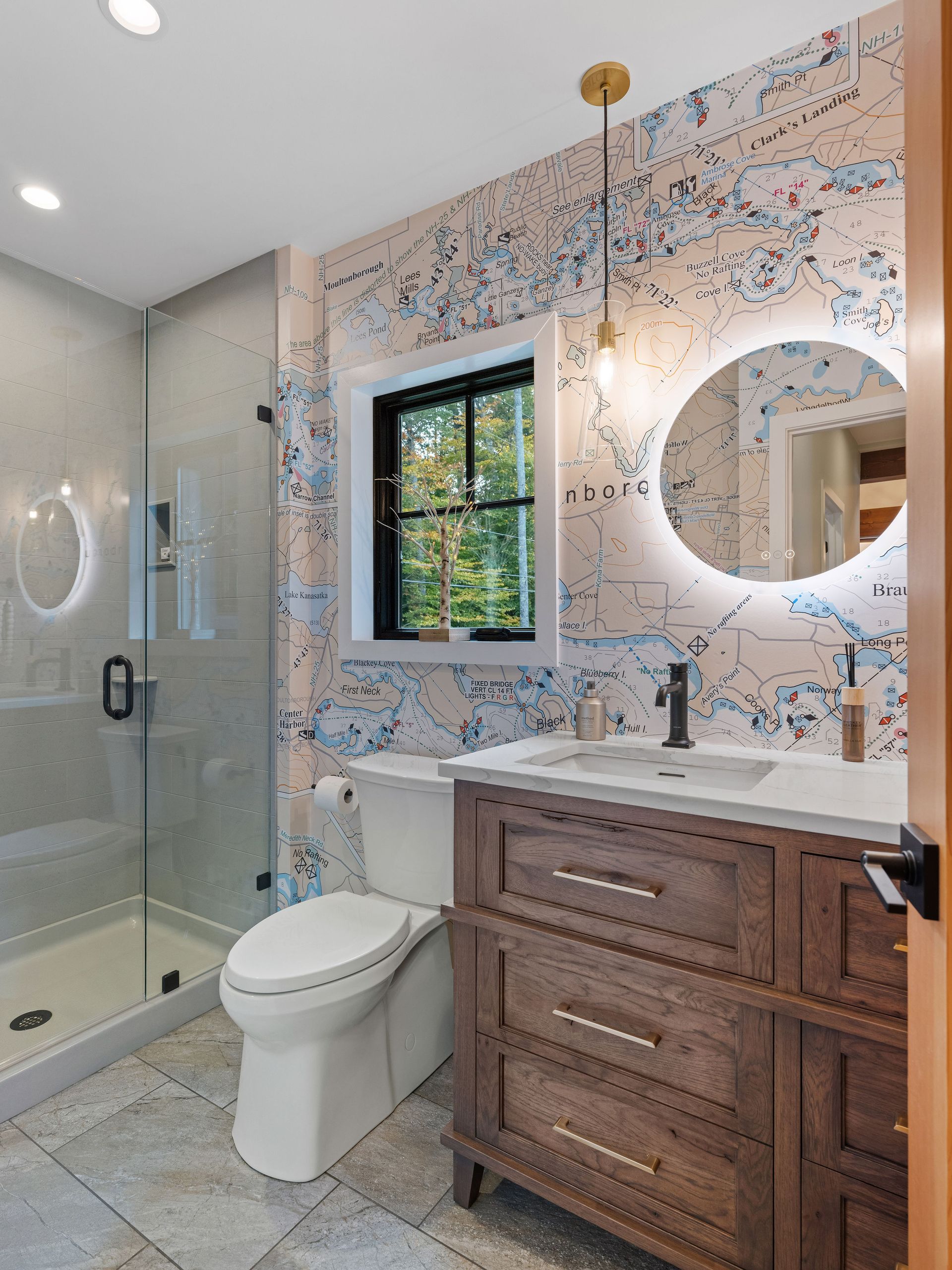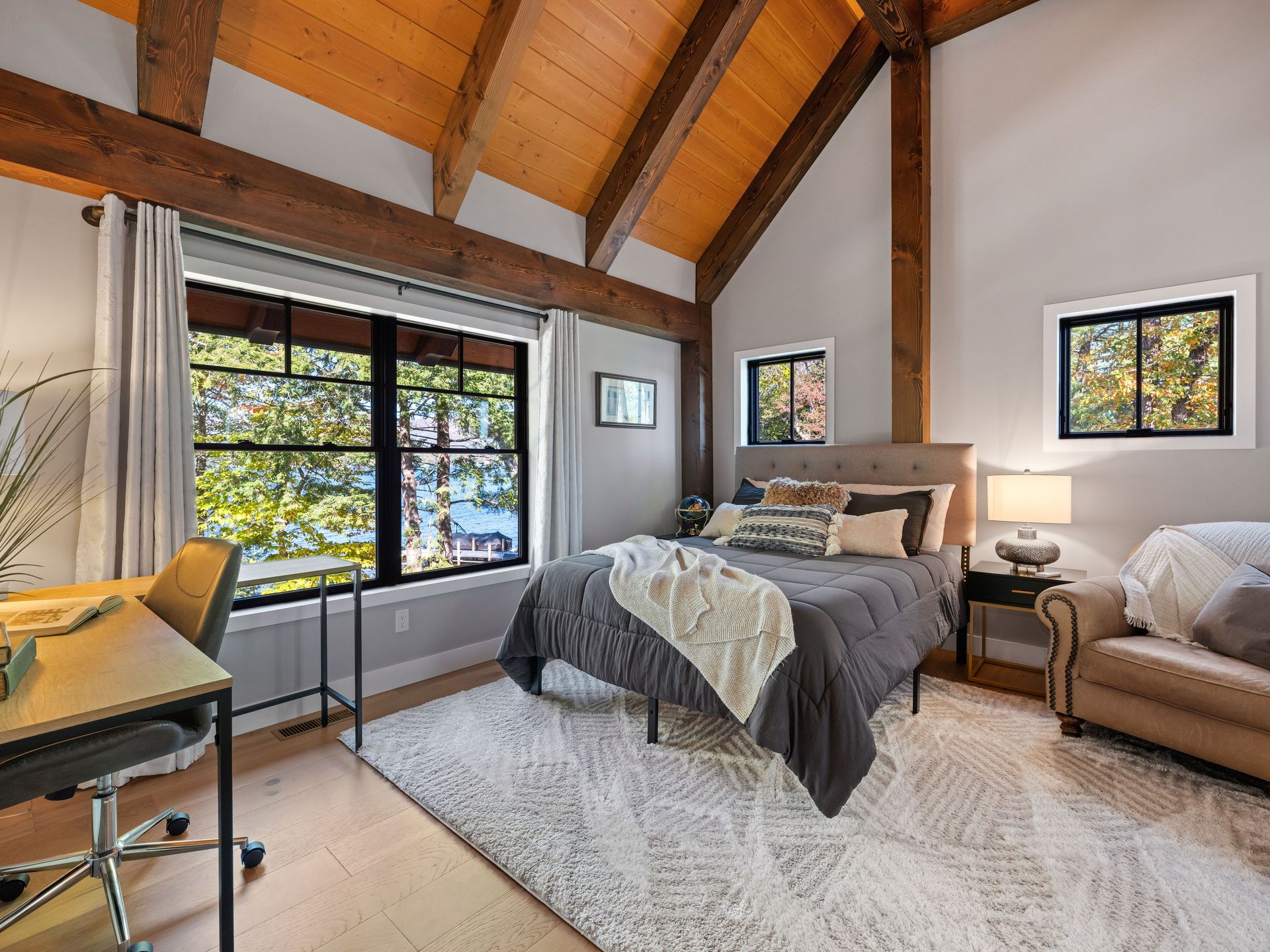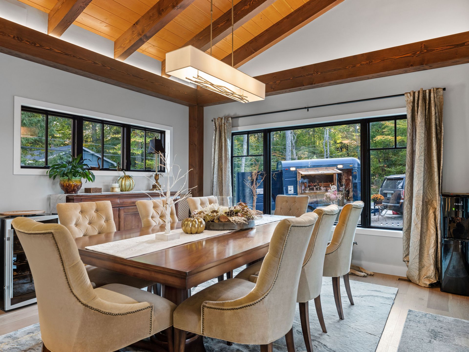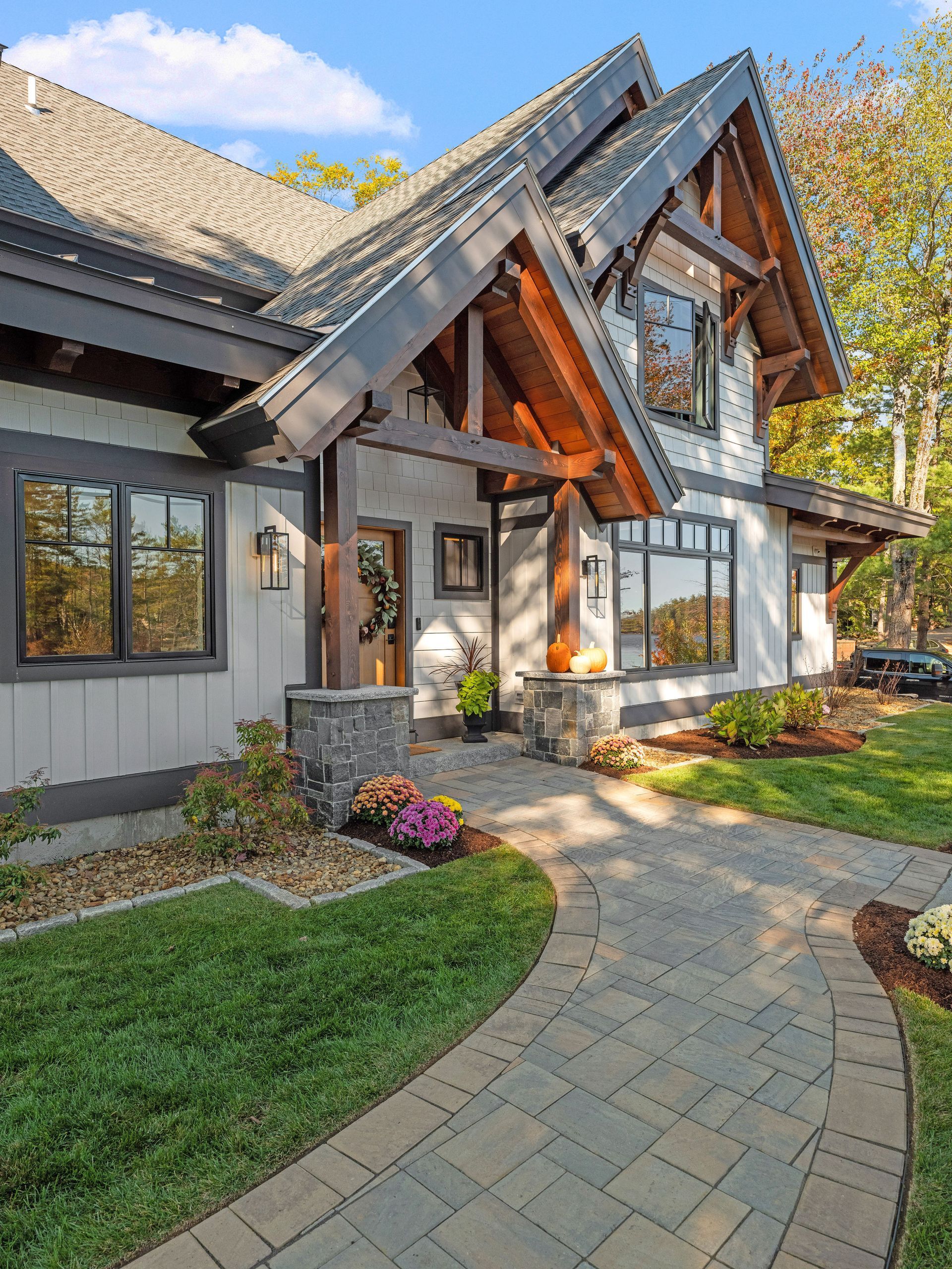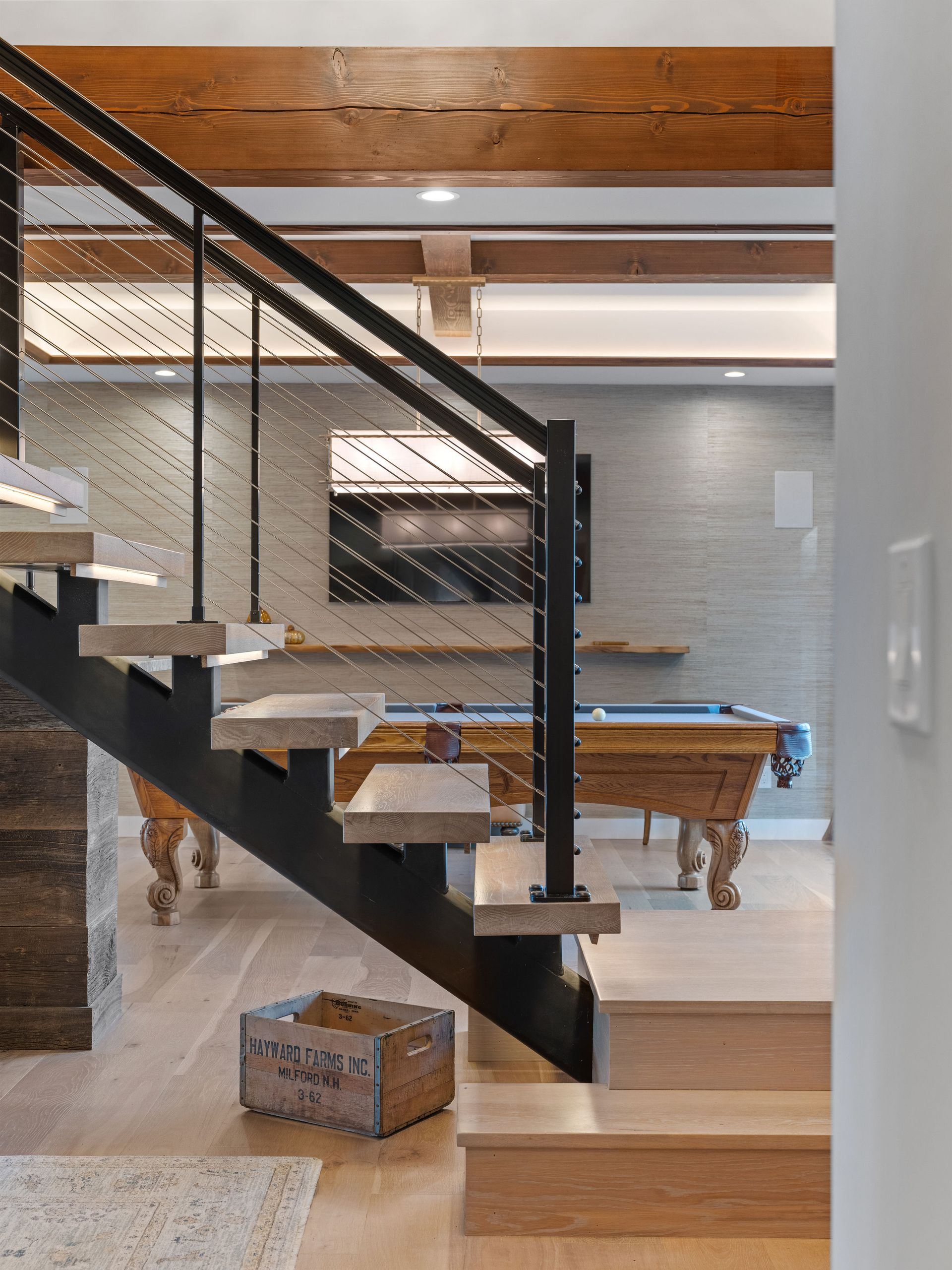 This modern lake house is a pure example of custom design and construction. Rustic timbers from Canadian Timberframes are blended with a transitional style that opens to Lake Winnipesaukee on both sides of the home. Upon entering, the floating staircase and billiard room with wet bar set the stage for a fun atmosphere. Unique cabinetry, wall coverings and tile will keep you exploring this trendy, yet warm, lakefront home. The connection to the exterior environment is created by the Pella Windows & Doors and allows you to flow onto an amazing exterior covered patio with fireplace for those cool fall nights. Family and friends are at the very core of this home – right where they should be!