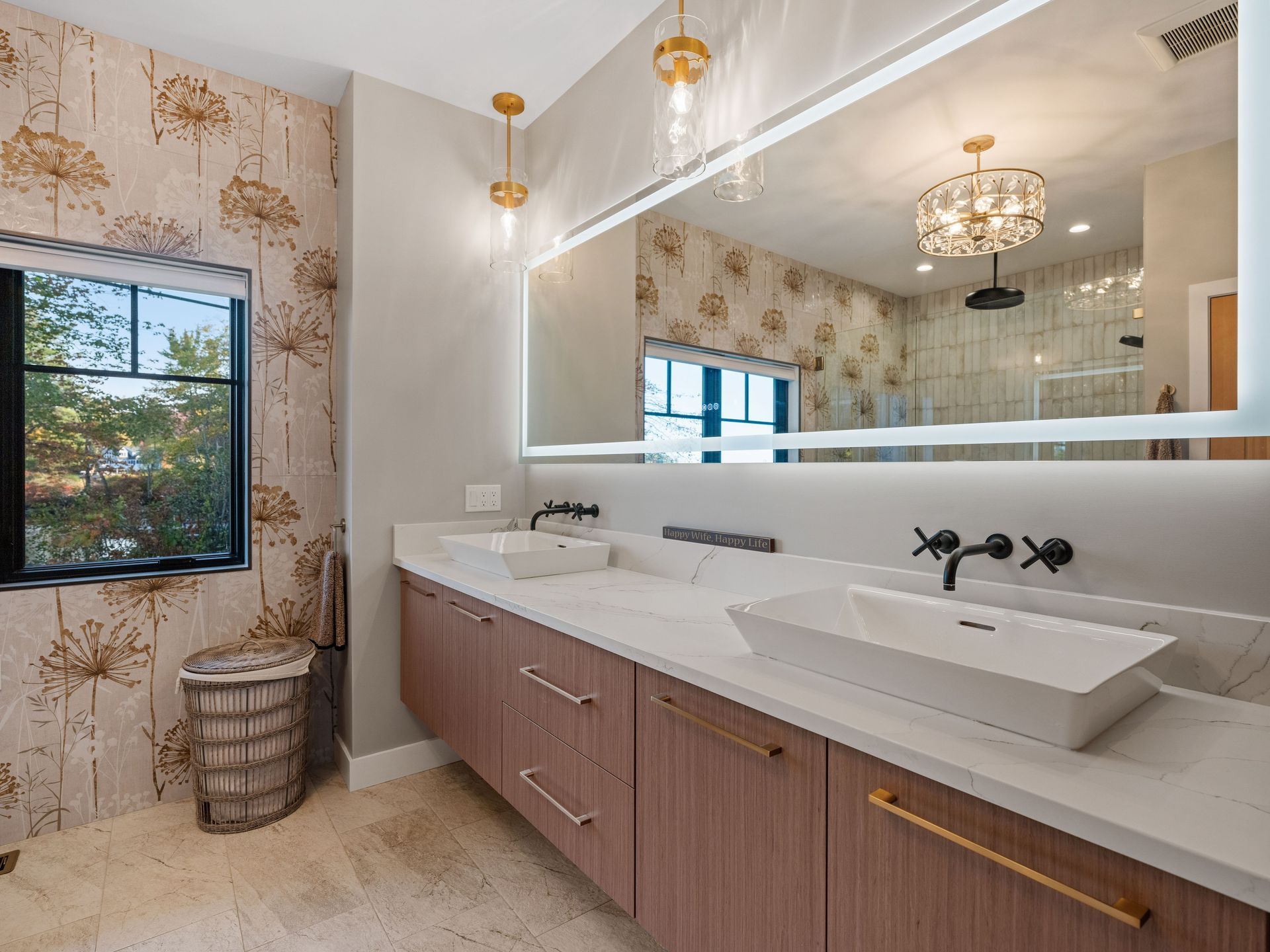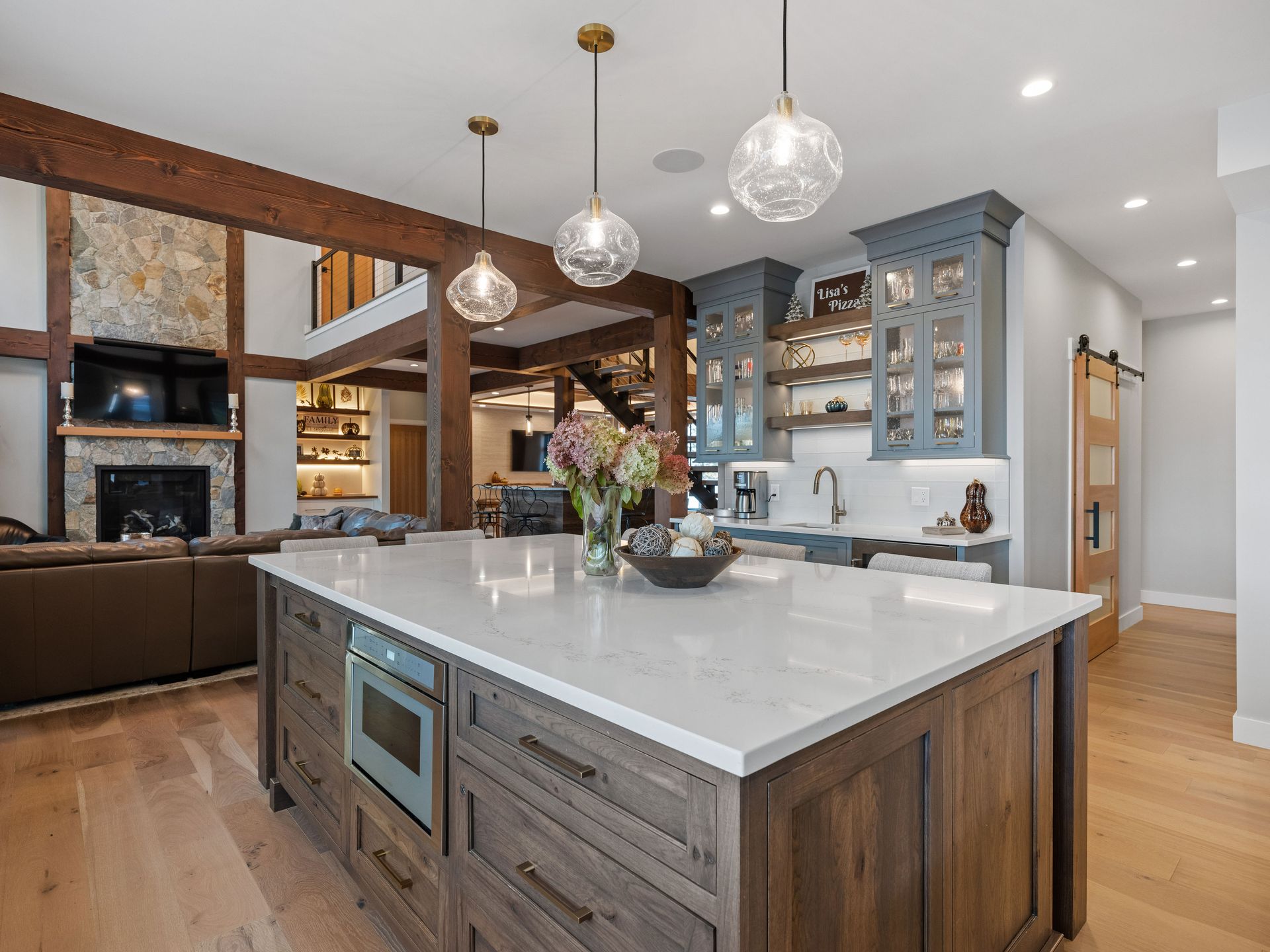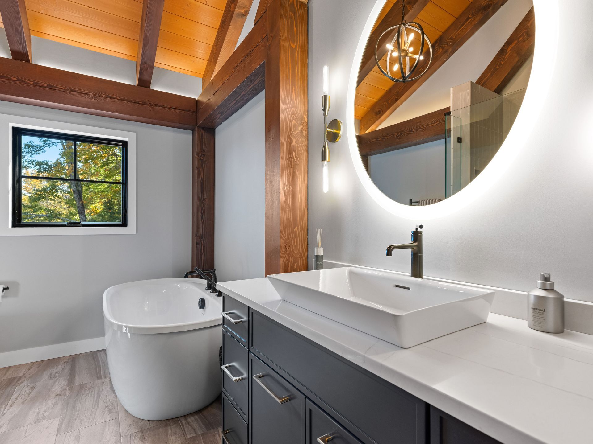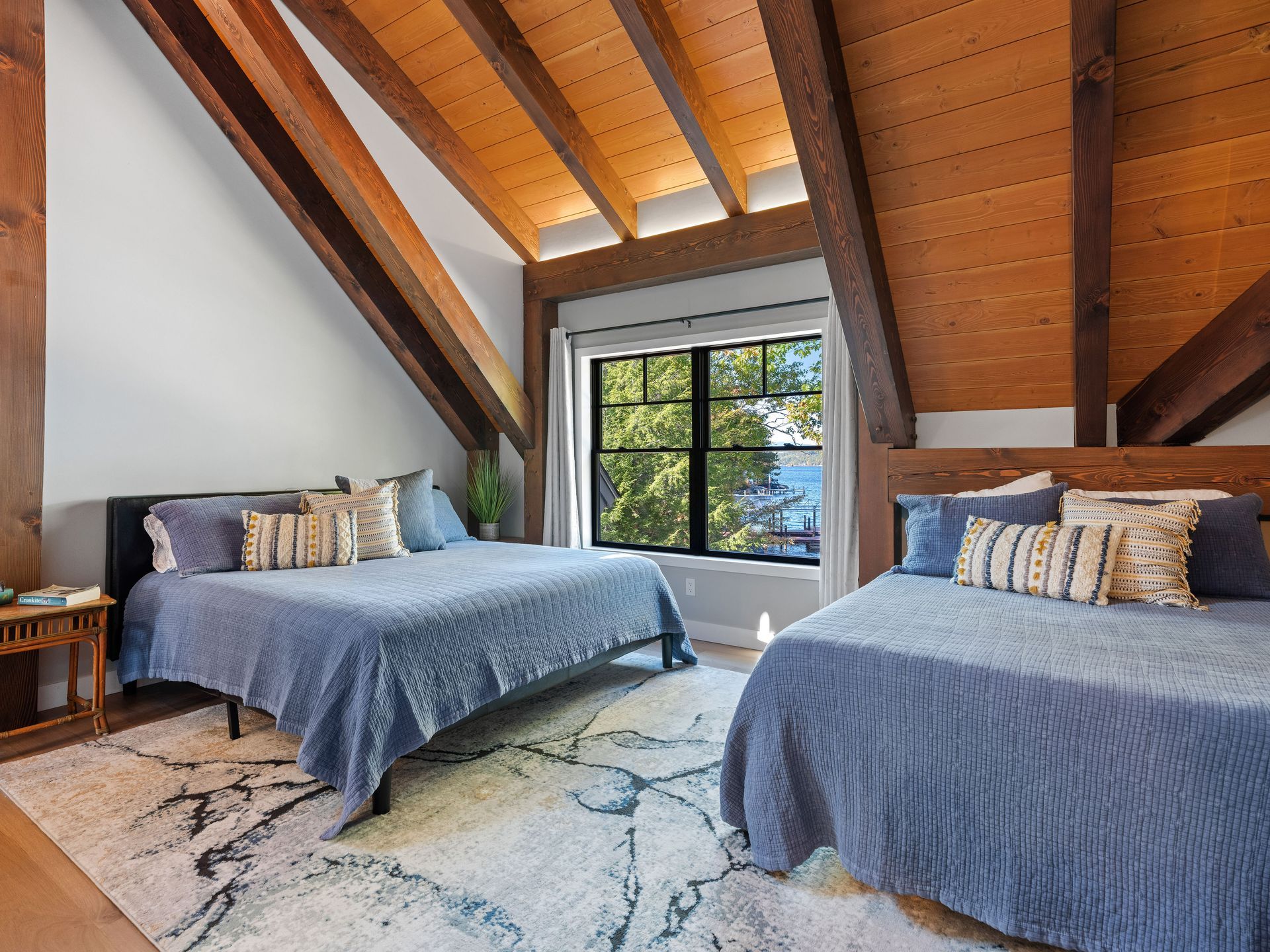 This modern lake house is a pure example of custom design and construction. Rustic timbers from Canadian Timberframes are blended with a transitional style that opens to Lake Winnipesaukee on both sides of the home. Upon entering, the floating staircase and billiard room with wet bar set the stage for a fun atmosphere. Unique cabinetry, wall coverings and tile will keep you exploring this trendy, yet warm, lakefront home. The connection to the exterior environment is created by the Pella Windows & Doors and allows you to flow onto an amazing exterior covered patio with fireplace for those cool fall nights. Family and friends are at the very core of this home – right where they should be!